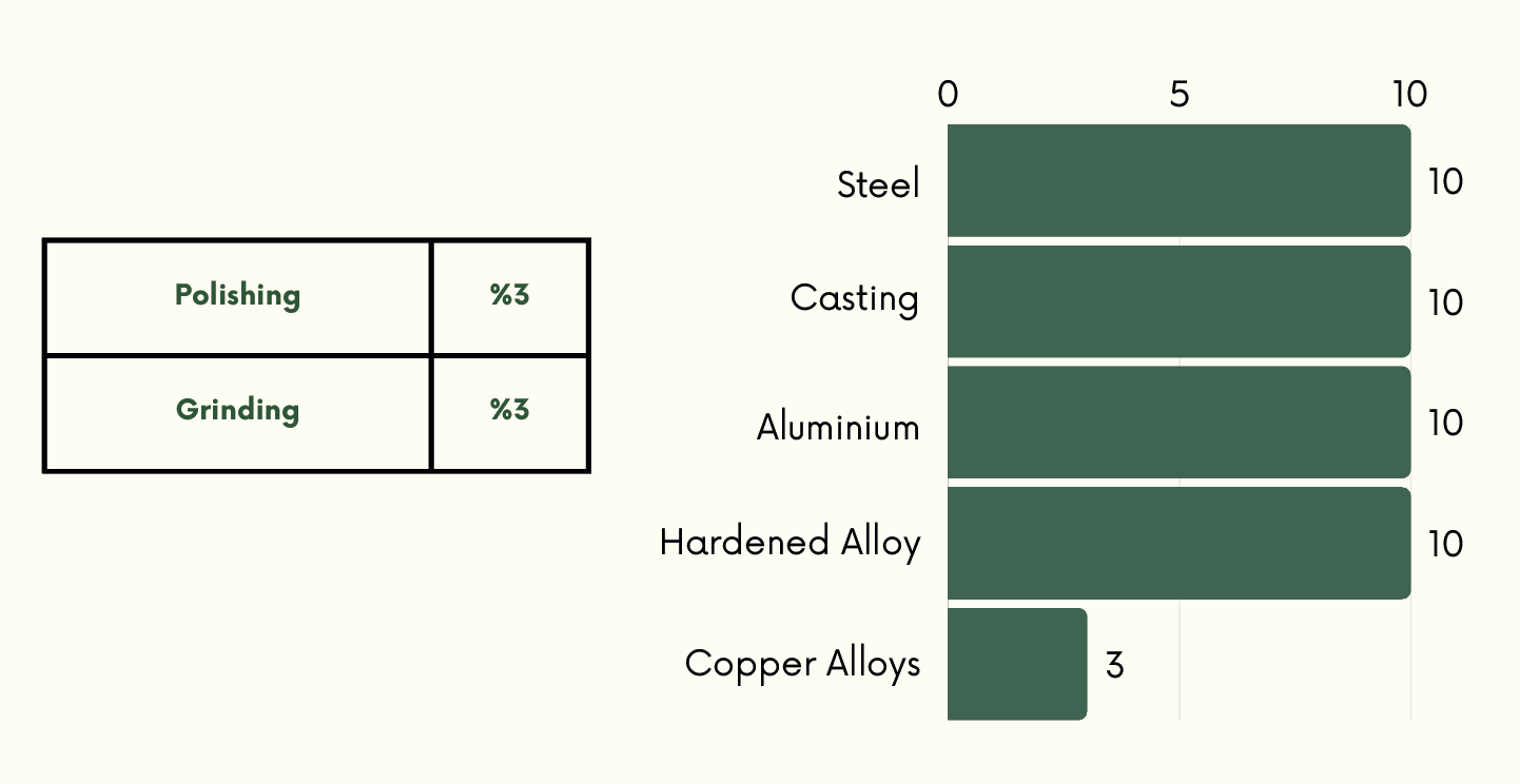 With its high performance, it offers a reliable solution for grinding steel and cast iron. The ideal choice for perfect results and trouble-free production.